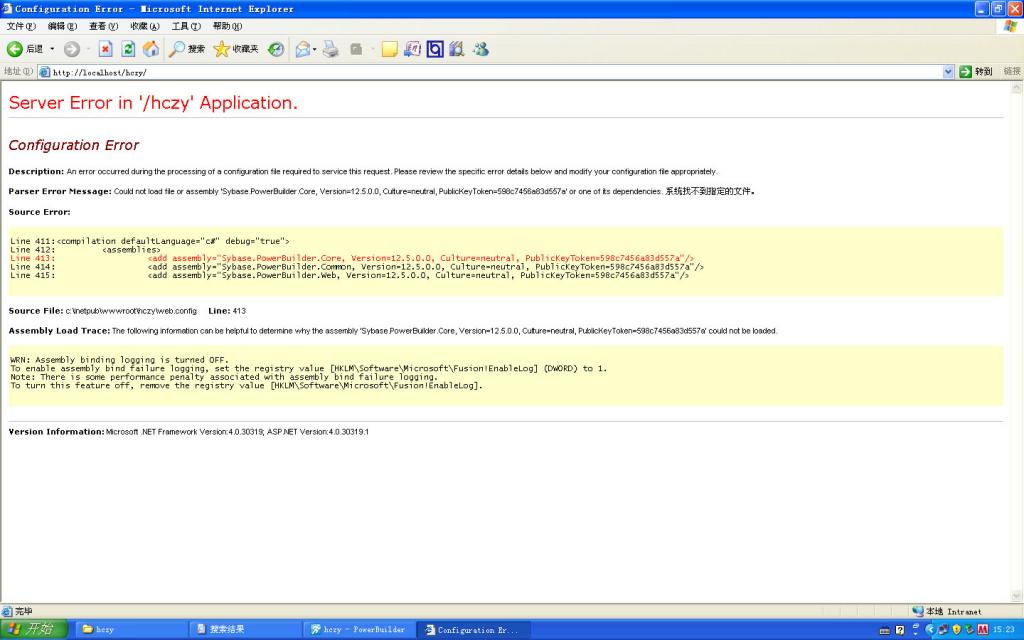 没有找到PB Web所需的程序集,检查Sybase.PowerBuilder.Core.dll是否在发布的站点中能够访问,将它复制在站点的Bin目录下和root目录下试试