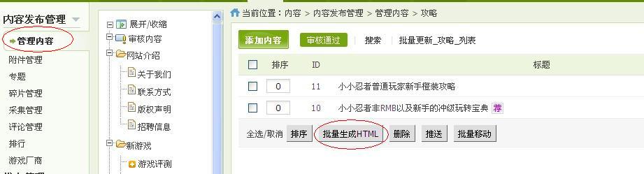 栏目生成Html的url规则发生改变时,需要更新缓存的地方: