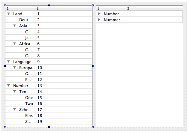 把一棵树用来显示行号,即第二列存储行号,隐藏第一列。
