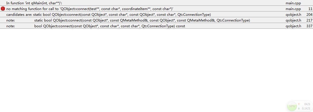 QObject::connect(&test,SIGNAL(selectedButton(QString)),&coordinateItem,SLOT(updateNum(QString))); test为ui ,coordinateitem是定义的坐标类,但是传参出错了,