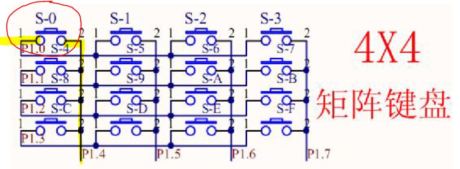 这个是需要软件上处理的,其中一个口输出低,在去读另外一个口的状态,如果为1没有键按下,如果为0则有键按下