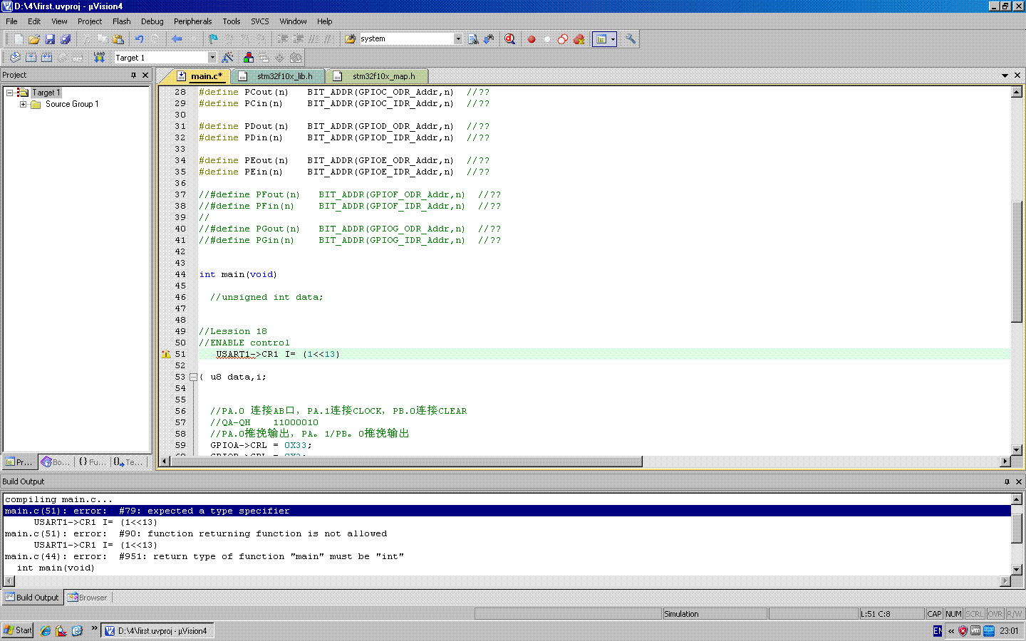 这句话应该放在main函数里面。放在u8 data,i;之后。。