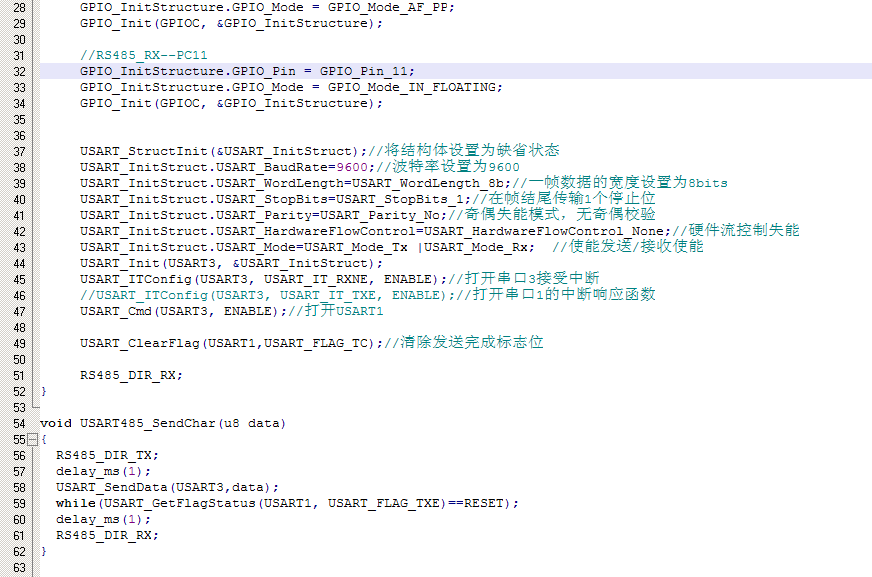USART_InitStruct.USART_HardwareFlowControl=USART_HardwareFlowControl_None;//硬件流控制失能
