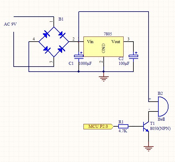直接用5V驱动这个有源蜂鸣器(加PNP管),声音有点小。所以想用7805输入端的电压给蜂鸣器供电。
