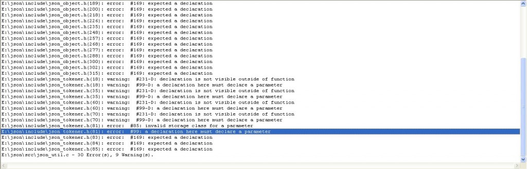 我在json的官网下载了一个json-c源码文件,但是我想用keil c编译。我不知道这样可行不可行,我试的时候报出来了一大堆的错误。