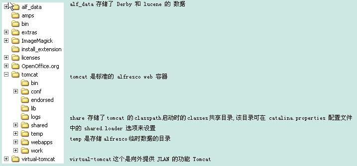安装后的 Alfresco 目录结构如下