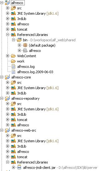 Alfresco Lab 3.0 Stable 的Full Install + SDK  还原在 Eclipse web runtime + debug 这个还原方式是最纯净的还原方式,全部引用 3.0 SDK Stable 版中的所有 jar 和 src 。Web 目录全部是原版的 Jar,Src 只是作为 Web Jar 的一个参考。(主要介绍 Windows 下的源码还原)