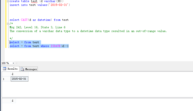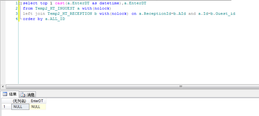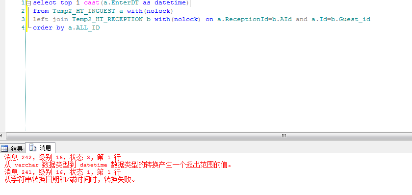 实在想不通为什么会出现这种情况,用convert转换也是同样的结果;之后我尝试着先用isnull或convert把该字段改为'1990-01-01',然后再行转换成日期格式也不行。
