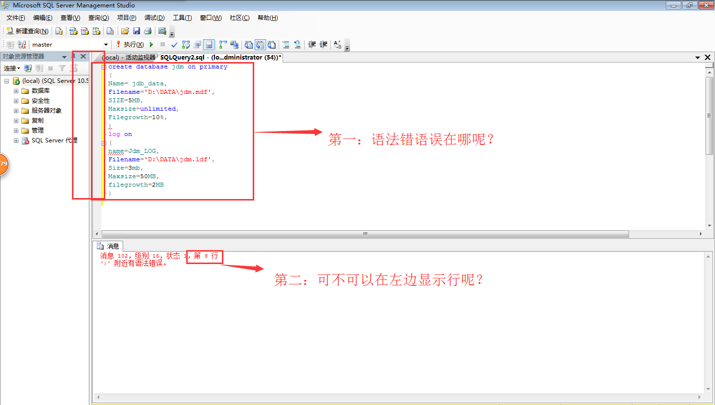 新建数据库出现的语法错误和如何在左边显示行数