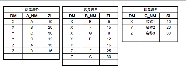 SET @SQL=@SQL+'FROM F LEFT JOIN(SELECT DM,A_NM,ZL FROM D UNION ALL SELECT DM,B_NM,ZL FROM E)G ON F.DM=G.DM '