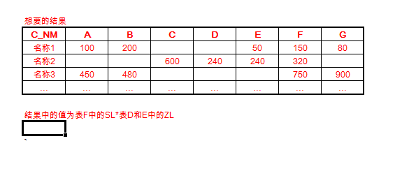 SELECT @SQL=@SQL+',SUM(CASE G.A_NM WHEN '''+A_NM+''' THEN G.ZL END)*F.SL['+A_NM+']'