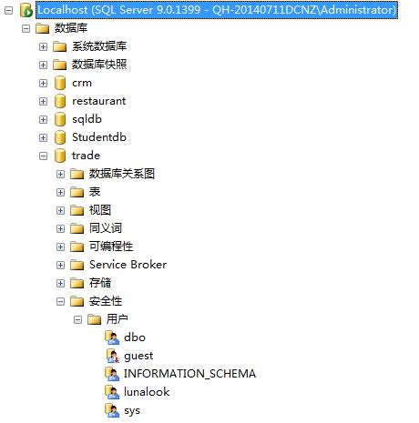 运行基于一个SQL server数据库的VC++示例程序。按要求自建了数据库trade,然后在服务器上新建登陆名lunalook,将默认数据源设为trade,大致效果如图1: