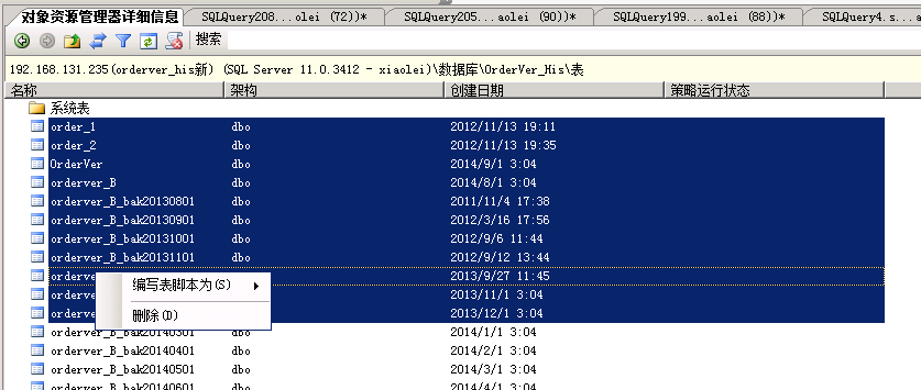 将数据导入到了默认系统数据库master,现想删除,不能批量操作,请教。