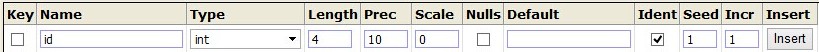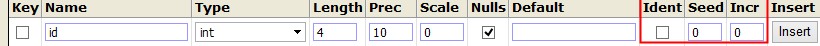 然后再新建一个id键,但是红框中没办法勾选ident,seed incr也填不进任何数字。用这个的前端录入数据,id列也变成空白