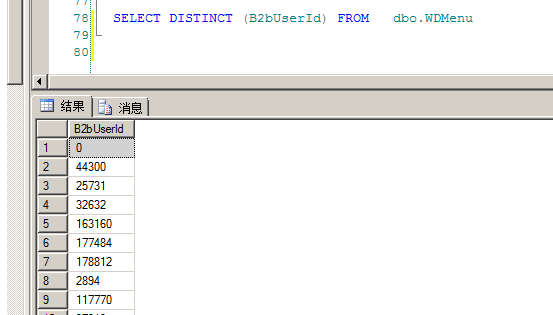 INSERT INTO @tempTable SELECT DISTINCT B2bUserId FROM dbo.WDMenu