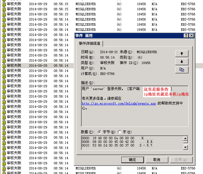 审核失败 用户 'server' 登录失败。 [客户端: 172.0.0.0]