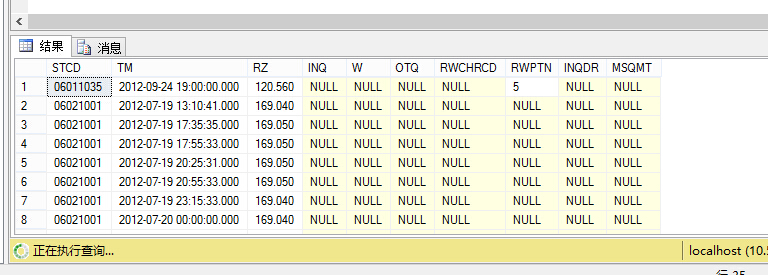 其中STCD为测站编码,就是相当于主键,一个测站可以有很多条记录,不同的日期,TM就是时间,