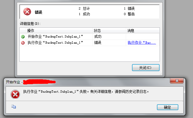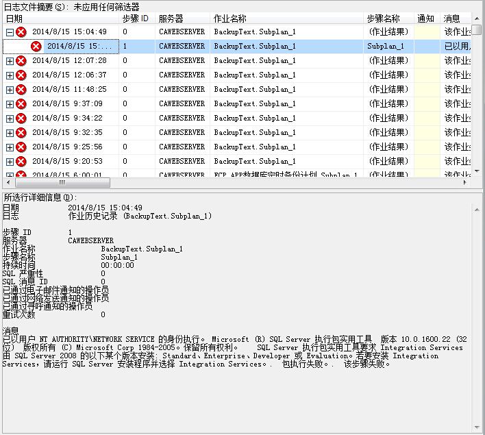 在Sql Server2008中新建了一个维护计划,在执行计划时报错