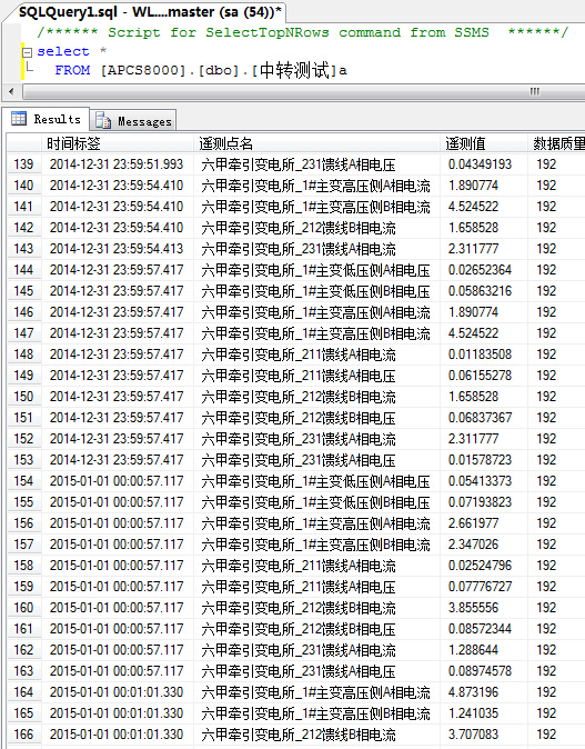 最近遇到一个问题:用C#写了一个dll,将收集的数据不断生成TXT文件,然后每过5分钟就把产生的数据存入数据库,但是在数据库中查询时却发现当时间跨年时,相应数据无法查询到,在下图中23:59:57.417之后有1分钟的时间,数据库中的数据不存在。但时间跨年时的数据在TXT文件中却是存在的,并没有丢失。请问这是因为数据没有入库还是入库后无法正常显示,有何解决办法?SQL查询截图如下: