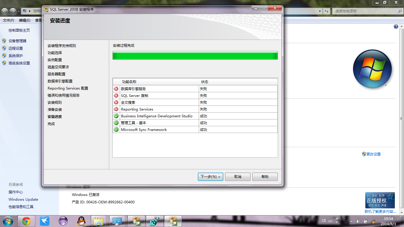 戴尔服务器主机 系统win 2003 装配sql 2008 报错