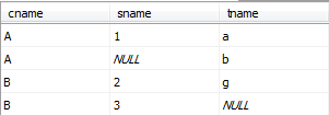 select case when a.cname is null then b.cname else a.cname end as cname,a.sname,b.tname from