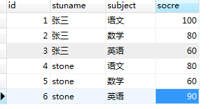 -------------------------------------静态SQl-------------------------------------- SELECT stuname,MAX(CASE WHEN SUBJECT='语文' THEN score END) AS '语文' ,MAX(CASE WHEN SUBJECT='数学' THEN score END) AS '数学' ,MAX(CASE WHEN SUBJECT='英语' THEN score END) AS '英语' FROM Test GROUP BY stuname