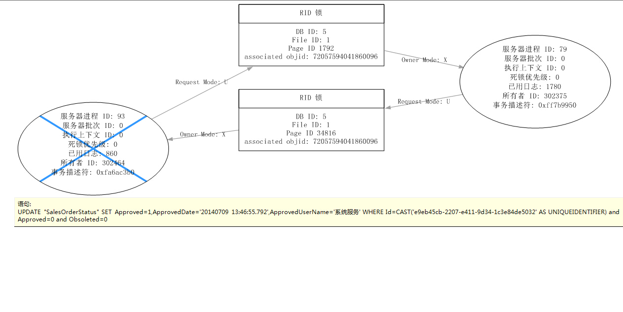 处理结果是:事务(进程 ID 93)与另一个进程被死锁在 锁 资源上,并且已被选作死锁牺牲品。请重新运行该事务
