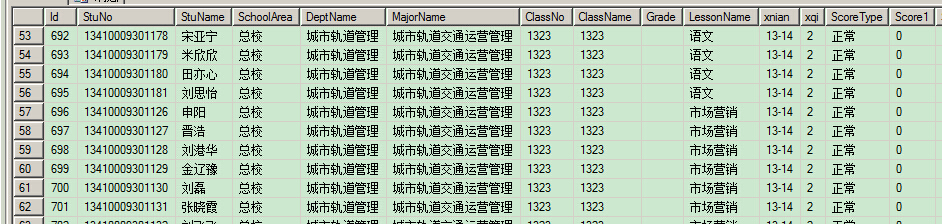 学生各科成线如图所示,Score1是当前学科成绩值 如图列表是 学生每科成绩 现在我想按班级查询出 该班所有学生的成绩情况