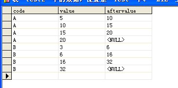 SELECT A.CODE,A.value,(SELECT value FROM #T B WHERE A.CODE=B.CODE AND A.ID+1=B.ID)AFTERVALUE