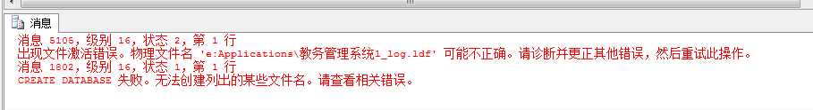 >> 用SQL server 2008创建数据库时出现了文件激活异常