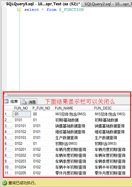 >> Sql Server 查询结果跟消息显示栏可以关闭么