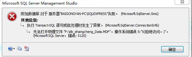 把这个mdf所在的上级文件夹,右键→属性→安全那里设为everyone完全控制
