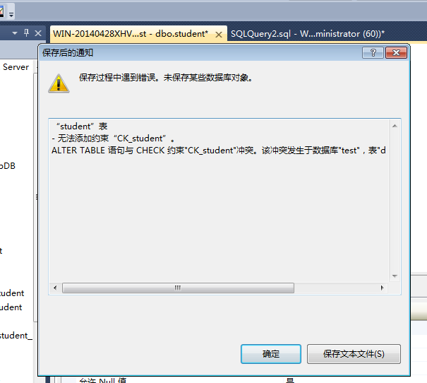 - 无法添加约束“CK_student”。