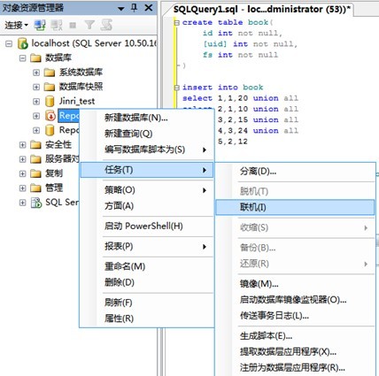 如果是你自己建的数据库,在右键任务栏有联机操作