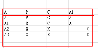 先要通过A.A=B.A1查询出A表中在B表中对应的全部数据,不存在的赋值为0 结果如下
