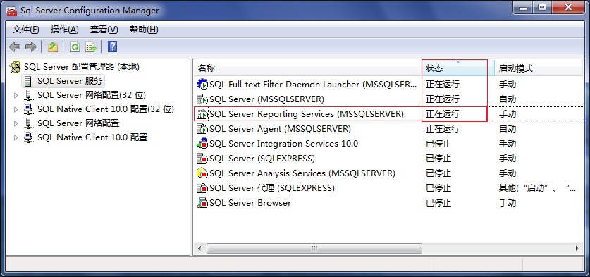打开SQL Server Configuration Manager-->SQL Server服务-->查看SQL Server Reporting Services服务是否已启动.