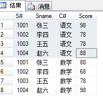 create table [SC]([S#] int,[Sname] nvarchar(2),[C#] nvarchar(4),[Score] int)