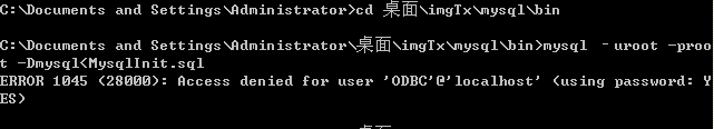 我在cmd下执行 MySQL运行sql文件命令(外部执行的没有登入MySQL)结果提示我——错误1045(28000):拒绝访问用户“ODBC”@“localhost”(使用密码:是的)——可是我登入MySQL执行有没问题,这是什么原因啊!!求帮帮忙解决下。。