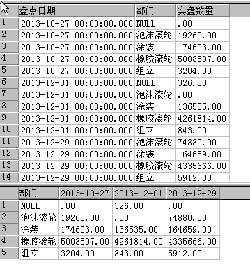 select 部门,max(case  when 盘点日期='2013-10-27' then 实盘数量  else '0' end) as '2013-10-27',