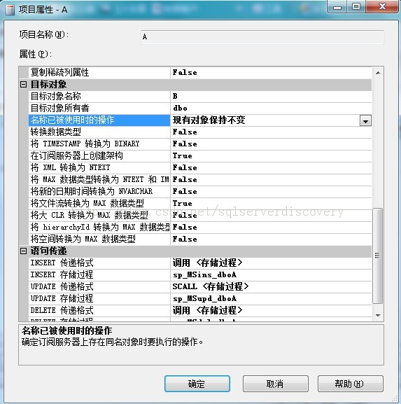 使用SQL2000的数据库复制功能,两台A、B服务器,从A到B,B只需要A的数据库数据表记录数据增加(插入)和UPDATE,不要把A记录删除减少也在B服务器上执行。 单向复制只要插入和UPDATE,怎样做,具体怎样改存储过程?