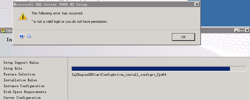 安装到几乎要完成的时候爆出:'' is not a valid login or you do not have permission。安装失败。