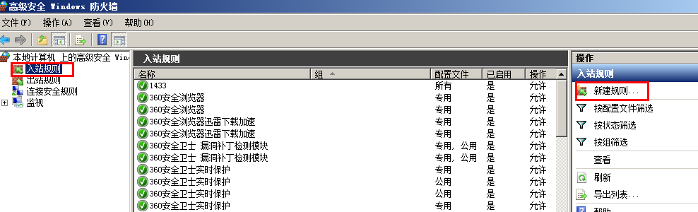 点击入站规则,新建规则