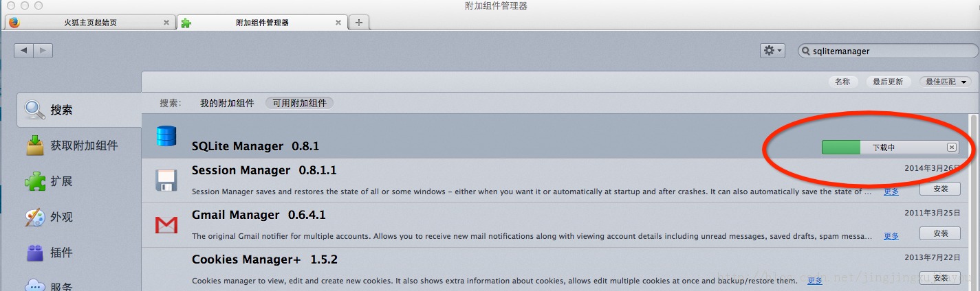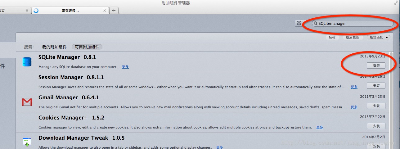 (3)出现如下的界面,在搜索框内搜索sqlitemanager点击安装。