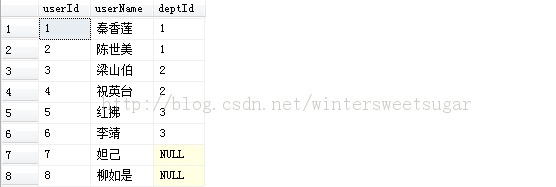 SELECT * FROM dbo.UserTB JOIN dbo.DeptTB ON dbo.UserTB.deptId=dbo.DeptTB.deptId结果: