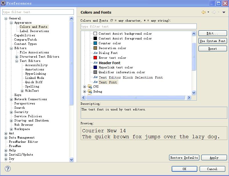 当前位置: 代码迷 >> SQL >> Eclipse/PLSQL设置字体大小,色彩