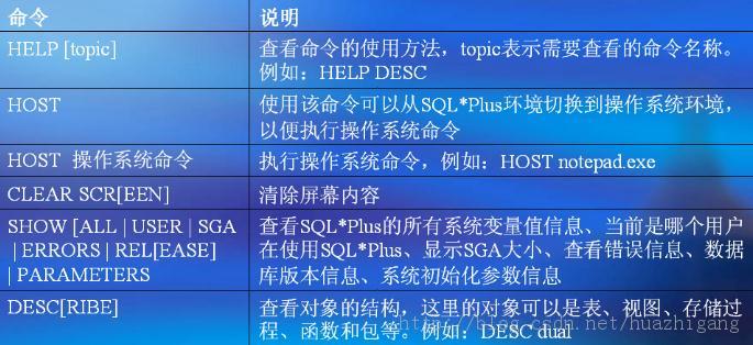 下面是在SQL*Plus窗口中常用的Oracle命令: