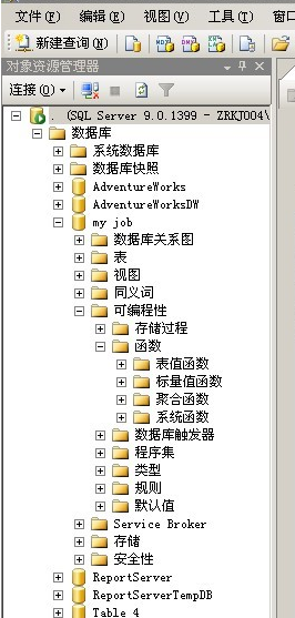 除了前面讲到的创建、修改、删除自定义函数的方法,我们也可以通过对象资源管理器-可编程性-函数来创建、修改、删除表值函数和标量函数。