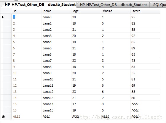 表tb_Student及其示例数据如下图所示。