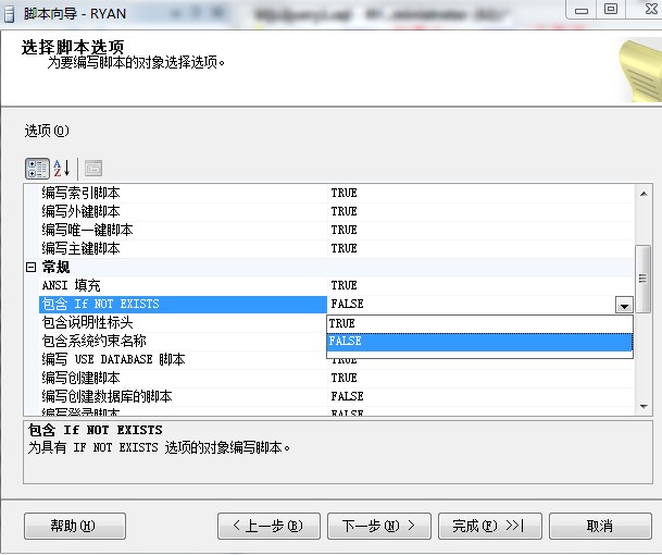 • 编写创建数据库的脚本”:是否产生 Create Database 的SQL 脚本