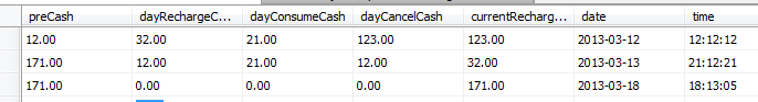 查询到的最大天数是2013-03-18这条数据。第三行。 而时间最带的是21:12:21是第二条数据